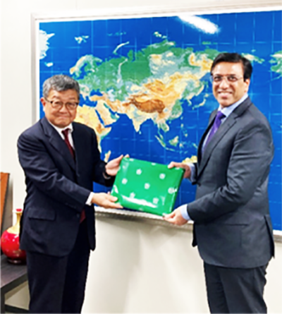 蝦名JATA理事長 (画面左) と アブドゥル・ハミド氏 (画面右) JATAに記念品を贈呈いただきました。