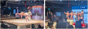 (相撲のライブショーの様子:実際の取組や力士との記念写真撮影など、体験型のショーを楽しむことができます)