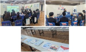 (上2つ:企業ブースでの説明の様子、下:参加企業各社の資料も多数用意されました)