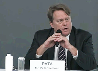 PATA代表のピーター・シモン氏は、PATAの今年度ビジョンである「A meaningful Pacific Asia tourism economy」に関連して、観光の多様化や資源開発には、供給と需要の両面の理解が不可欠であること、PATAは「観光資産マッピング」を通じ、地域の文化・自然資源の独自性を明確化し、各国の適切な市場対応を支援していること、またオーバーツーリズムや持続可能性の課題の原因は観光客数に偏る傾向にあると考え、「意義のある観光」という新しいコンセプトに取り組んでいる、環境や経済への影響を正しく評価する新たなKPIを導入することで、地域全体を見据えた持続可能な観光戦略の推進を目指しているといったプレゼンテーションを行いました。